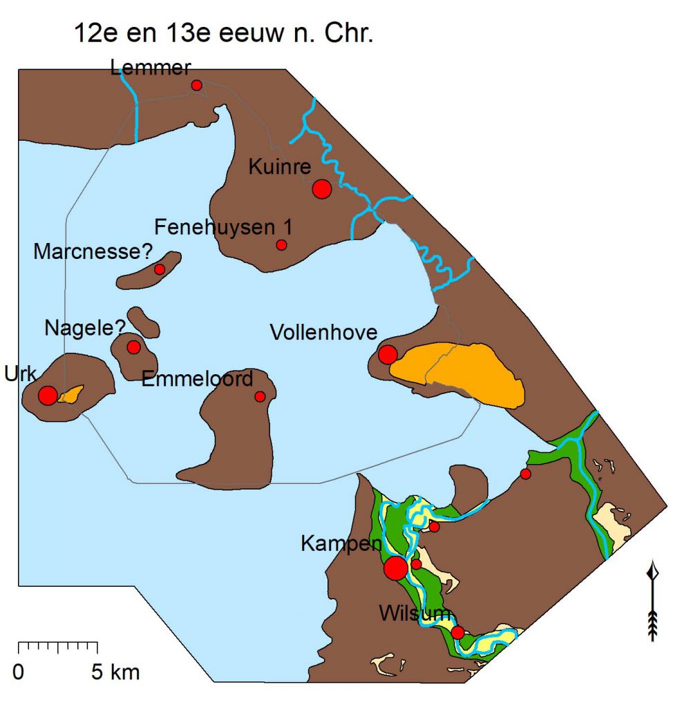 Door een samenloop van stormen en vloeden verdween in enkele honderden jaren tijd het meeste land, vertelt Van Popta. ‘Hierdoor verdronken dorpen zoals Nagele, Marcnesse en Veenhuizen, terwijl eilanden zoals Urk en Schokland zich net konden handhaven. Deze eilanden waren ooit vele malen groter dan wat er uiteindelijk van is overgebleven.’ Resten van de verdwenen eilanddelen zijn nog steeds terug te vinden in de voormalige zeebodem. Het gaat daarbij o.a. om dijken, terpen en sloten.