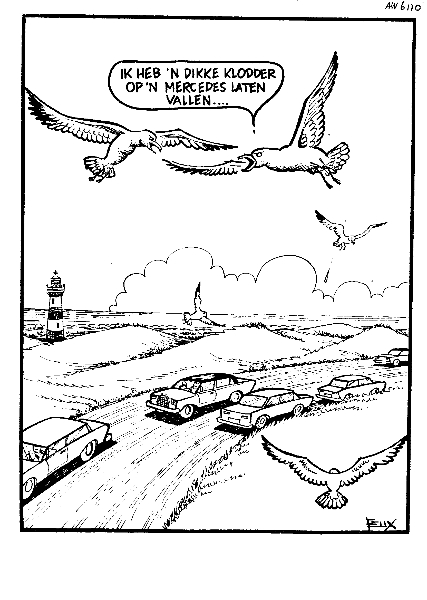 De autoweg is ook een bron voor humoristische situaties waar cartoonist Felix Roosenstein in die jaren zich flink op kon uitleven!